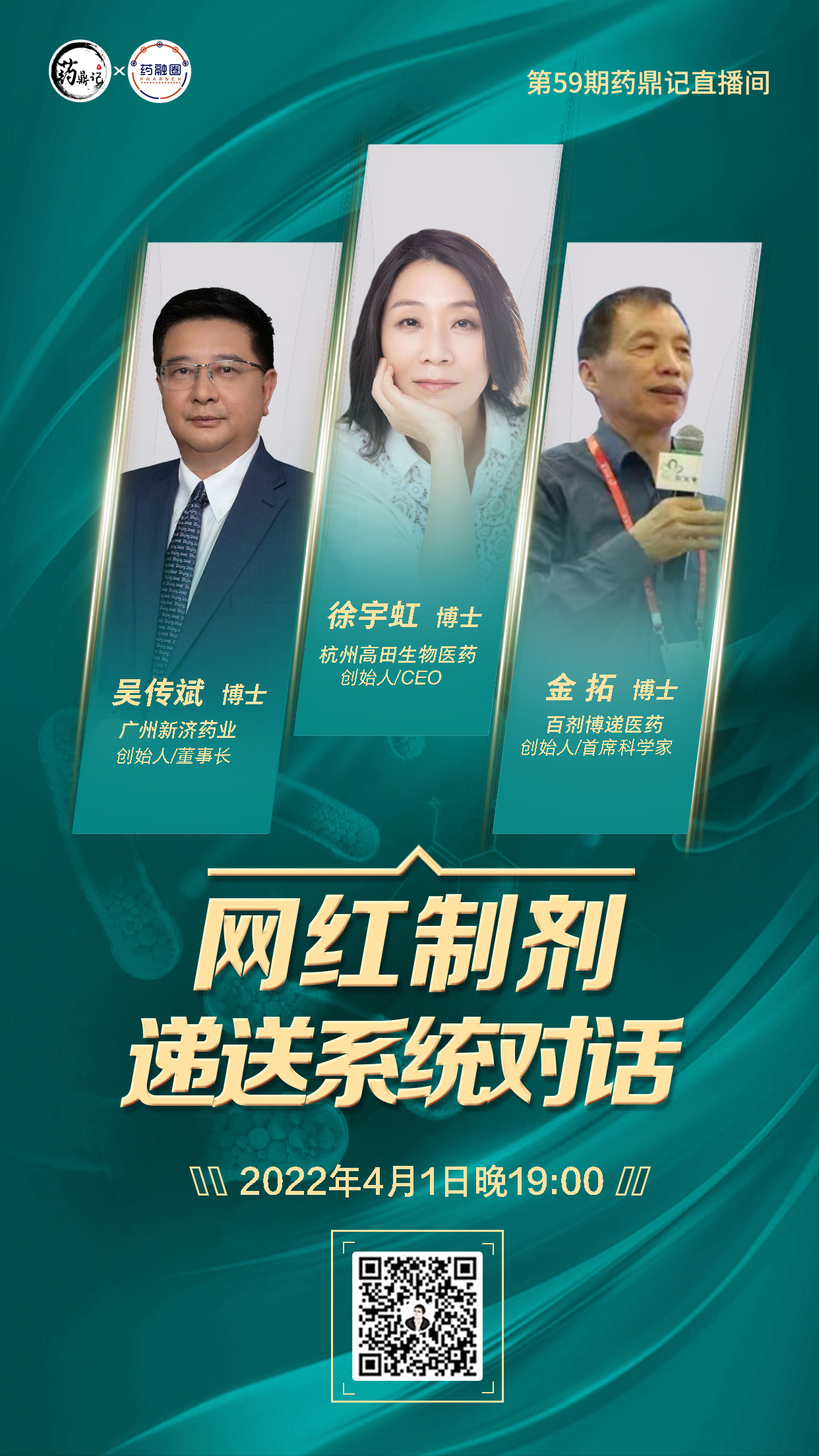 随着普通制剂竞争的日趋激烈及国内制药的技术进步,利用复杂制剂技术和新型药物递送系统等制剂技术,开发改良型新药,已经成为当前研发的重要方向。2022年4月1日晚,药鼎记直播间邀请了吴传斌博士、徐宇虹博士与金拓博士,一起讲述高端复杂制剂的研发难点和要点以及不同制剂的市场现状。