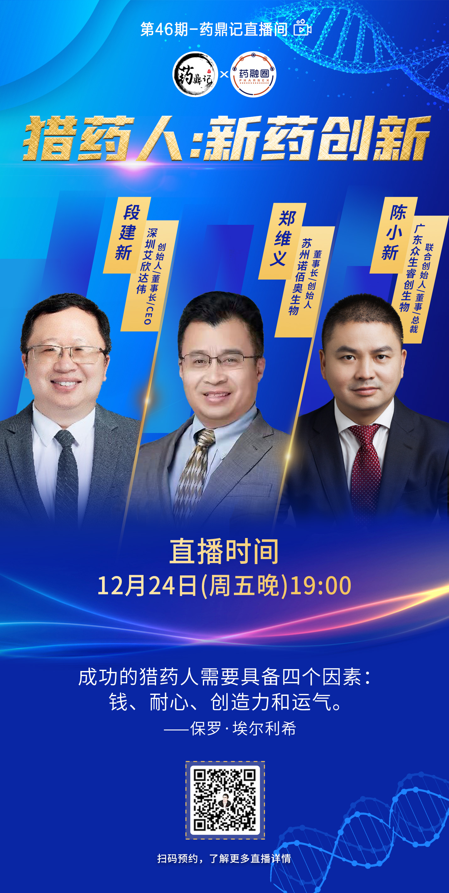 短短几年间从无到有、从有到优,国内新药创新生态愈加成熟。药企加大研发投入,临床管线布局越来越丰富,新型靶点随之涌现。2021年12月24日晚,药鼎记直播间迎来了三大新药武林高手,分别从新冠、肿瘤和罕见病等不同方向谈江湖观点,与屏幕前的听众一同参与分享独到见解,为大家带来了精彩的关于新药创新的直播。