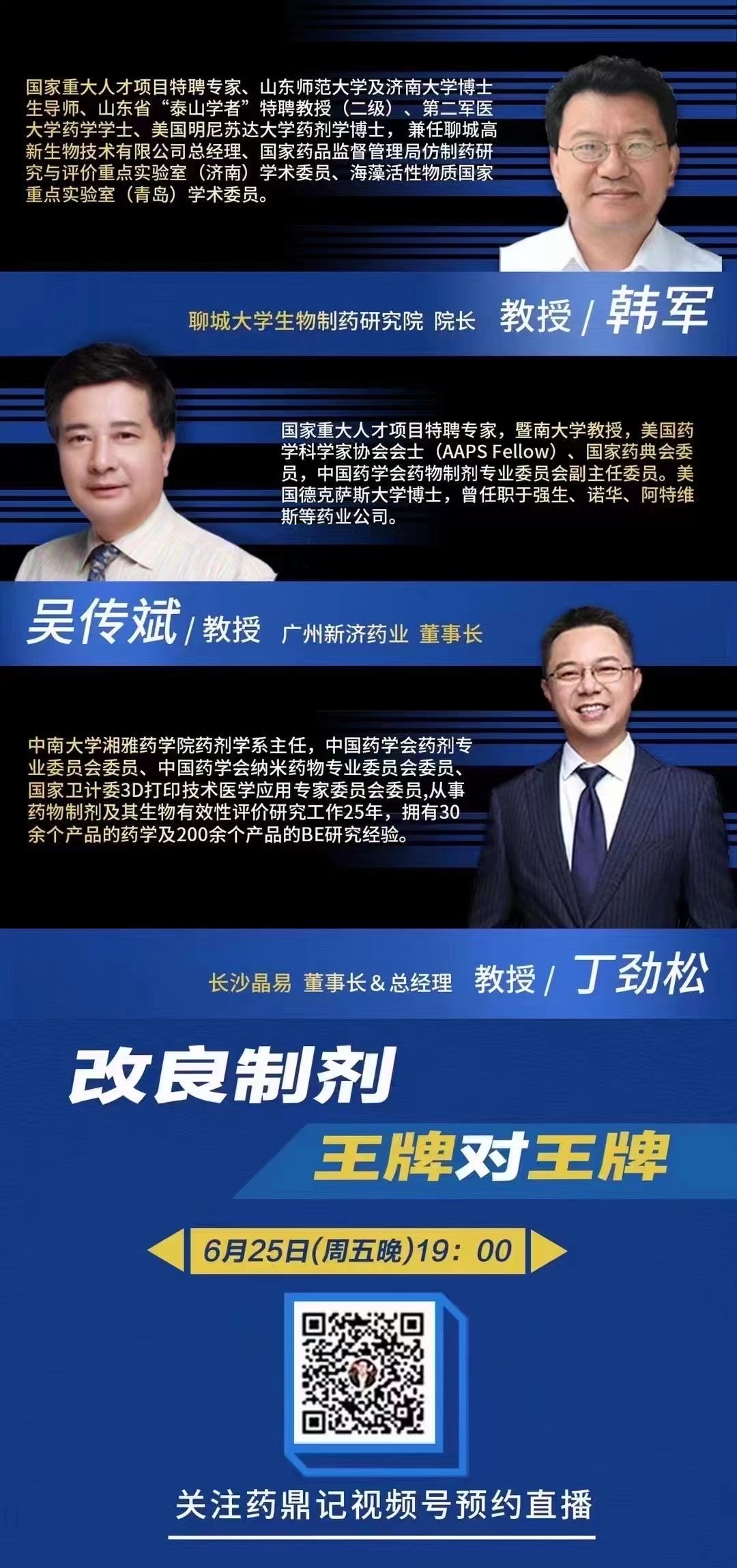 改良制剂,研发难度介于源头创新和一般仿制药之间,对于药企来说风险与投入可控,是抓住创新风口的一个较佳选择。本次“药鼎记”直播邀请到了几位在事改良制剂及改良型新药研发上具有代表性的科学家企业家,从立项、临床需求技术等各方面进行了讨论。